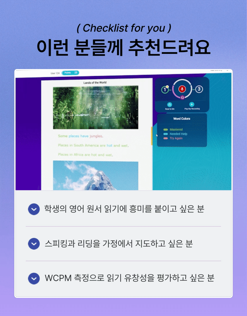 PC Windows10 이상, 아이패드 5이상, 갤럭시탭(S7(SM-T970, SM-T733), A(SM-P580/P585, SM-T510)). 컴퓨터 환경에 따라 추천헤드셋(사이트 내 '이용자가이드' 참고)이 필요할수 있습니다.