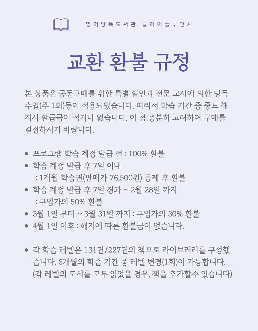 2. 학습 계정(ID)을 부여한 시점부터 서비스를 이용한 것으로 간주하며, 전자출판물의 특성상 짧은 시간 안에 전체 자료 열람 등이 가능하므로 환불이 불가능합니다.