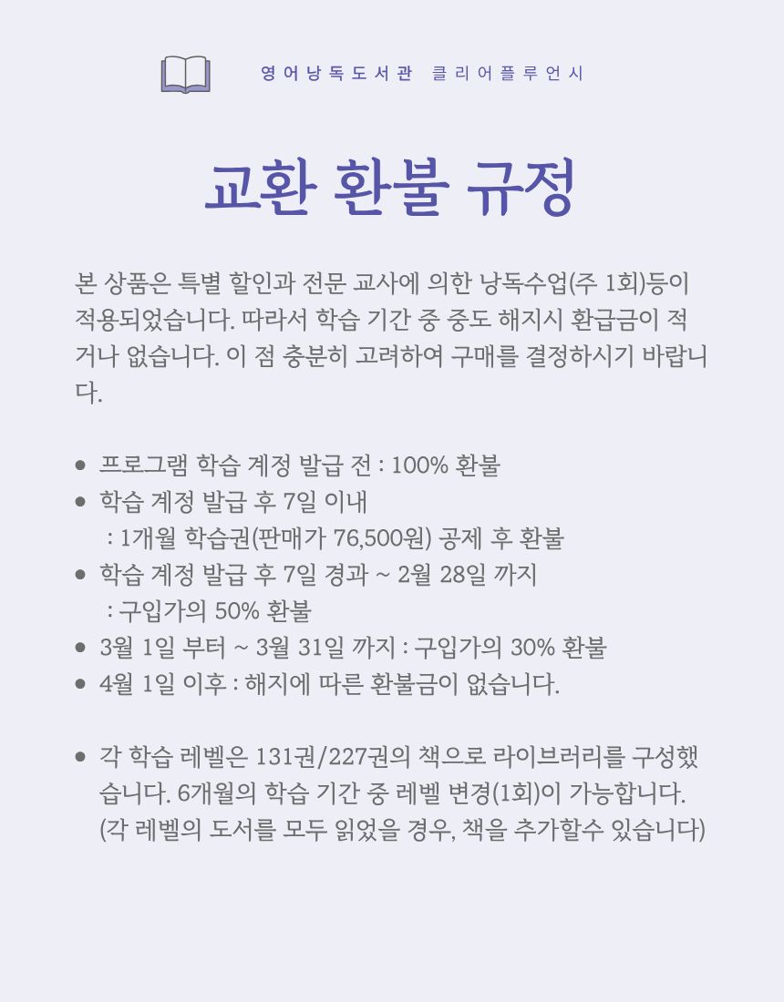 2. 학습 계정(ID)을 부여한 시점부터 서비스를 이용한 것으로 간주하며, 전자출판물의 특성상 짧은 시간 안에 전체 자료 열람 등이 가능하므로 환불이 불가능합니다.